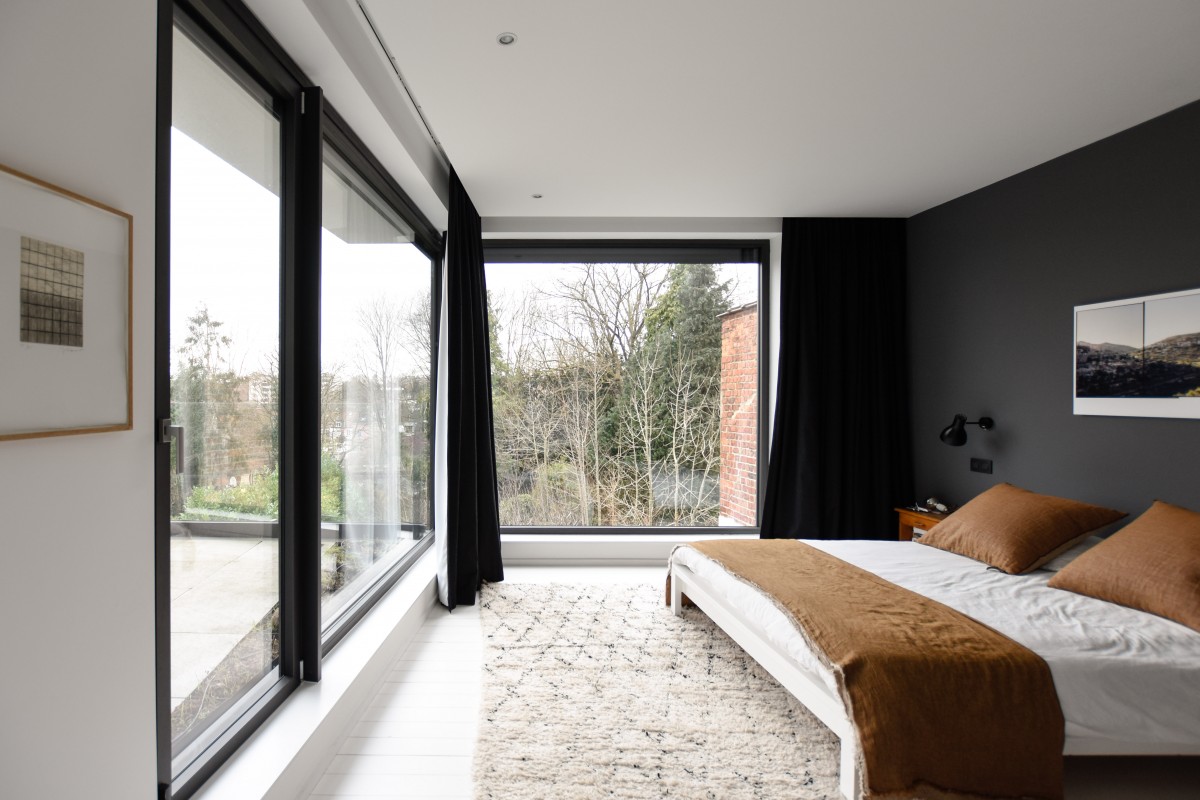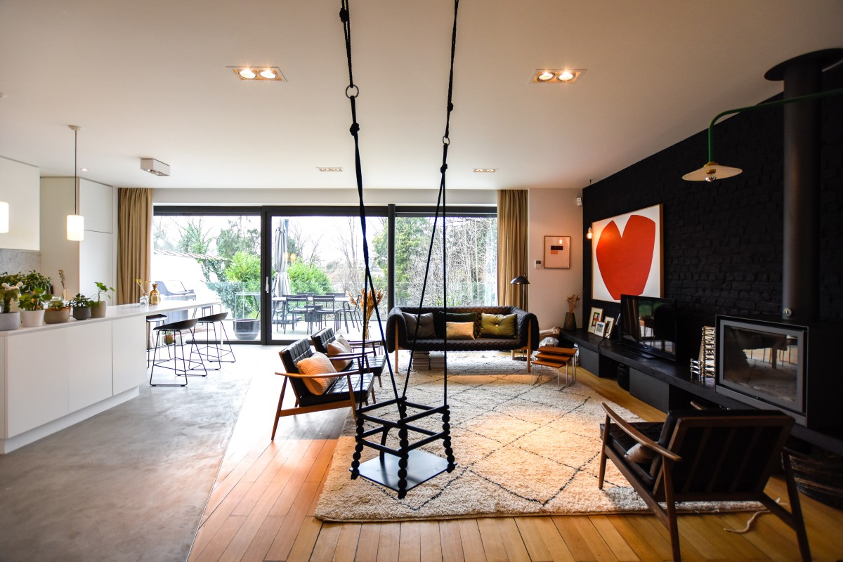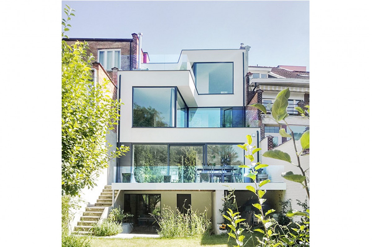 In this thorough renovation, the rear facade has been completely redesigned to offer pleasant living areas and oblique views of the outside.