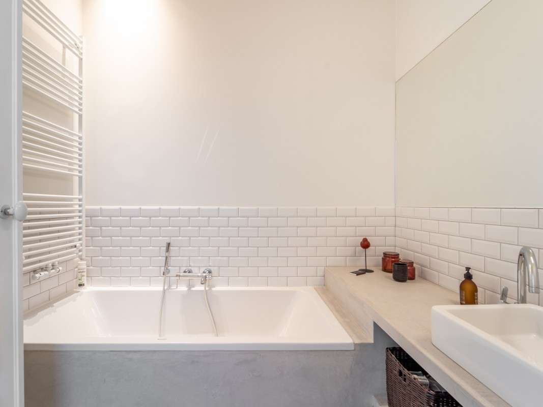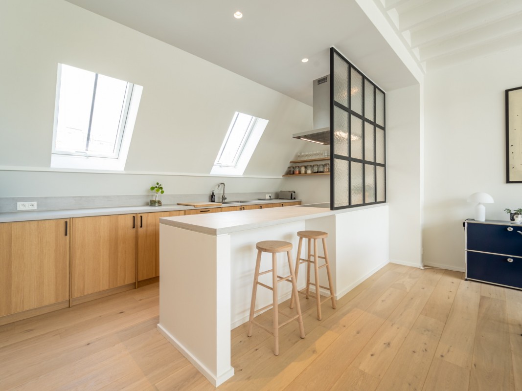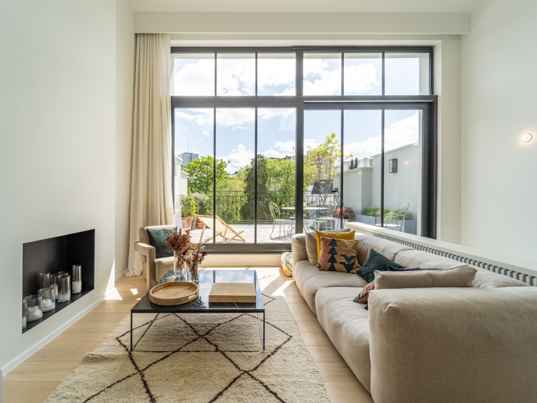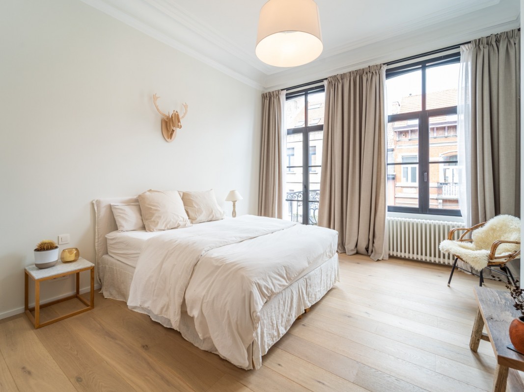 This typical Brussels house has been divided in 3 units : a two-bedroom duplex, a one-bedroom flat and a three-bedroom triplex.