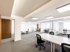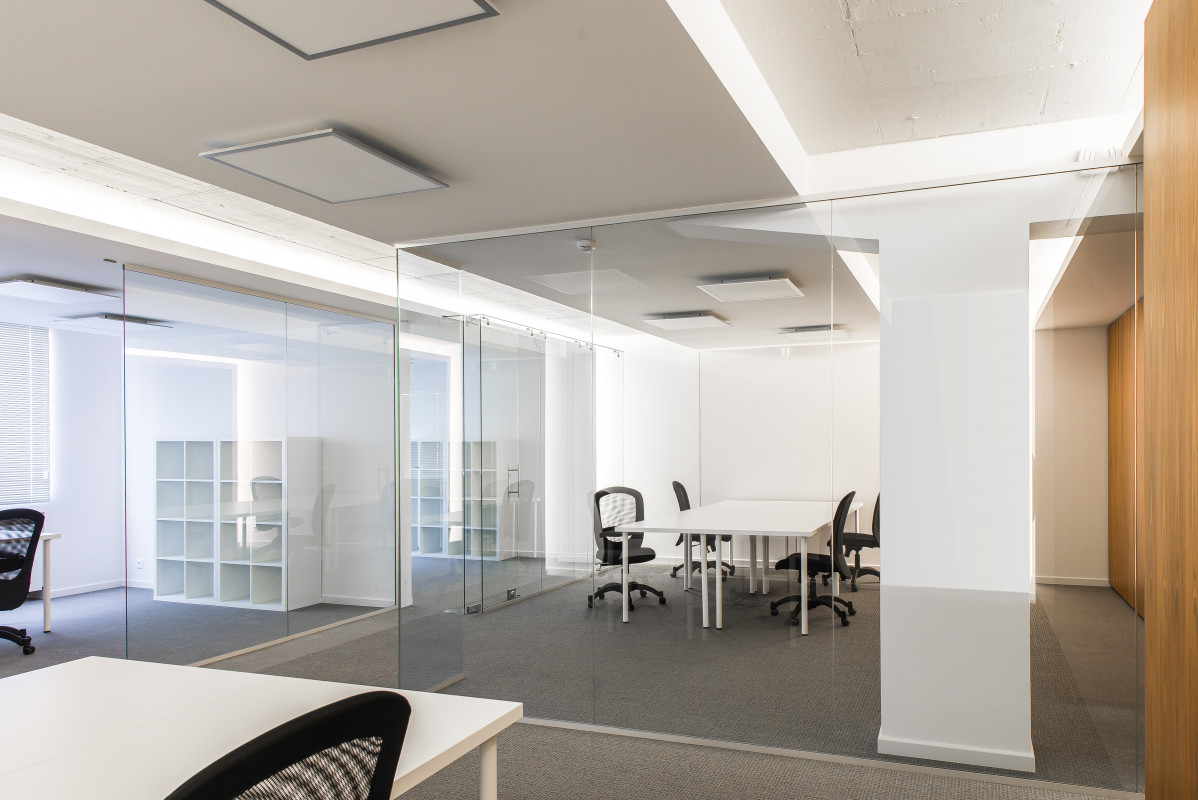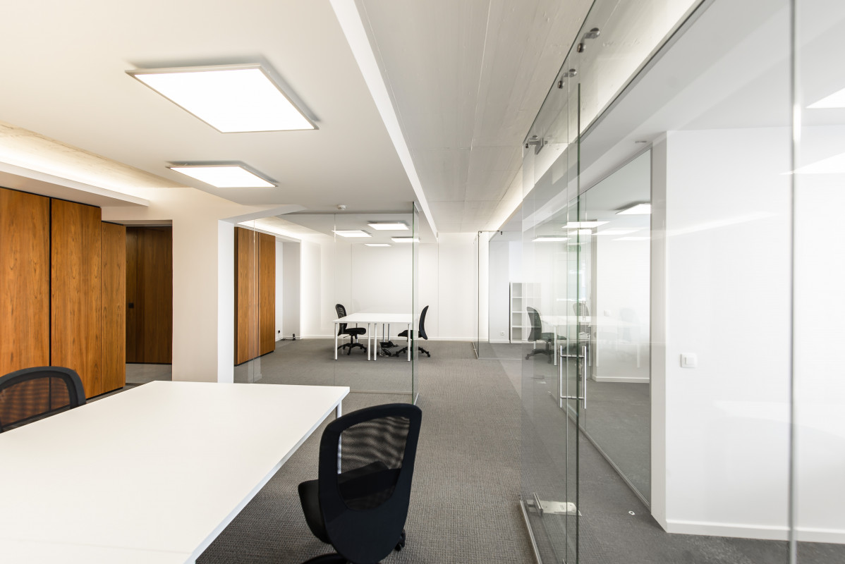 During this office floor planning, we have decided to create a rhythm between concrete slabs and suspended ceilings. This approach allowed us to define different working areas, offer a real acoustic comfort and integrate at the same time indirect lighting.