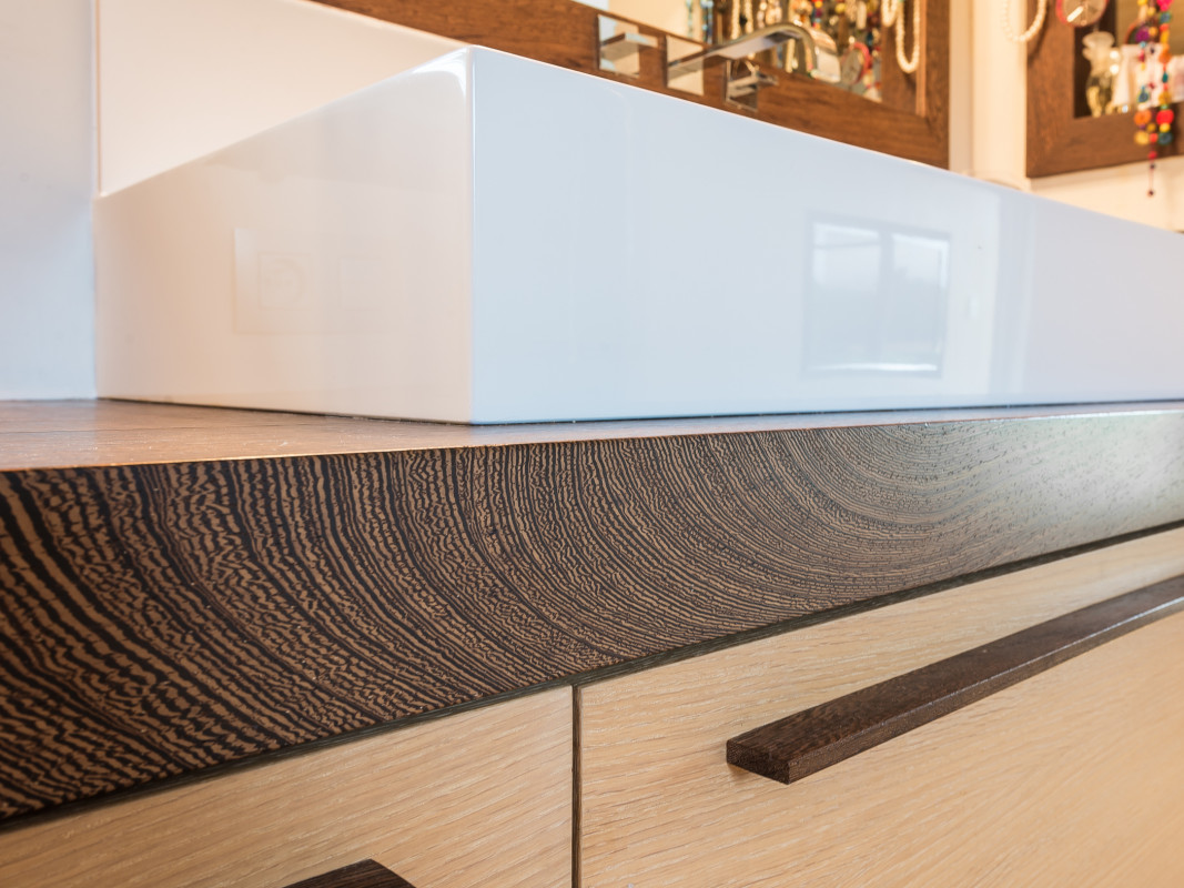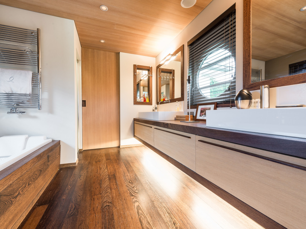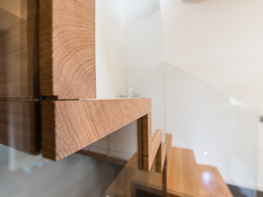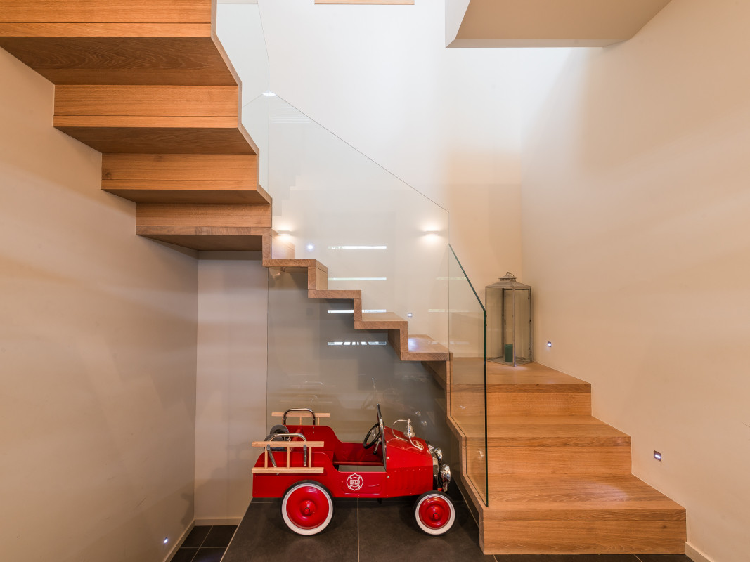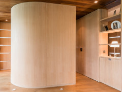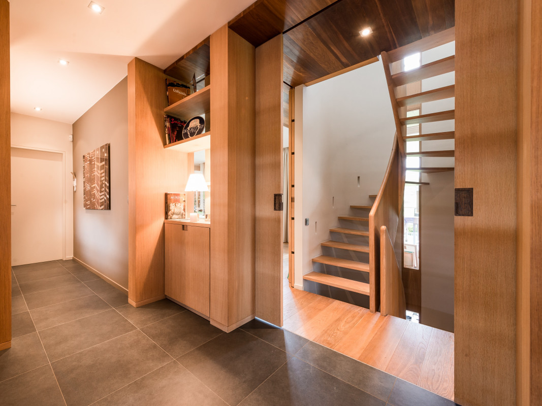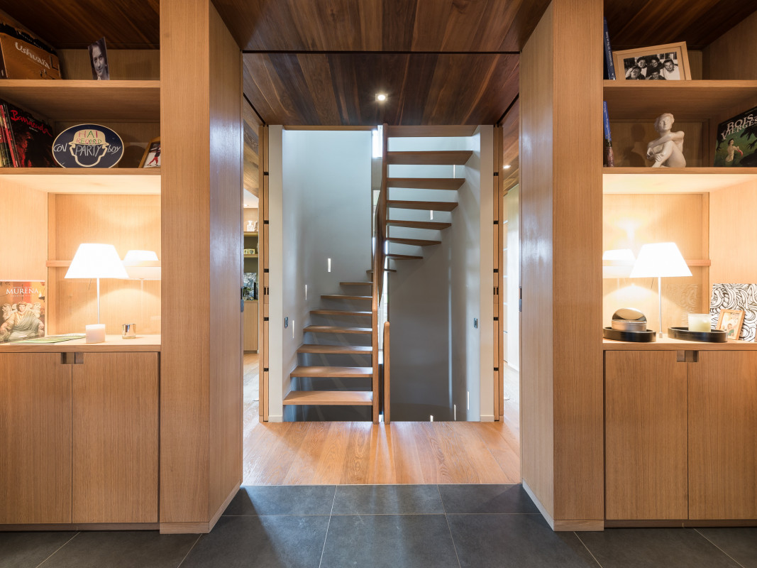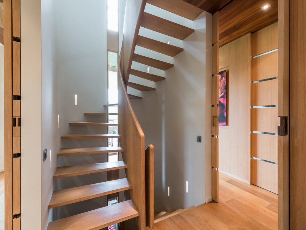 Interior design in a new construction. Oak veneer is showcased in this overall concept of an architect's house (in collaboration with Tim Concept office).