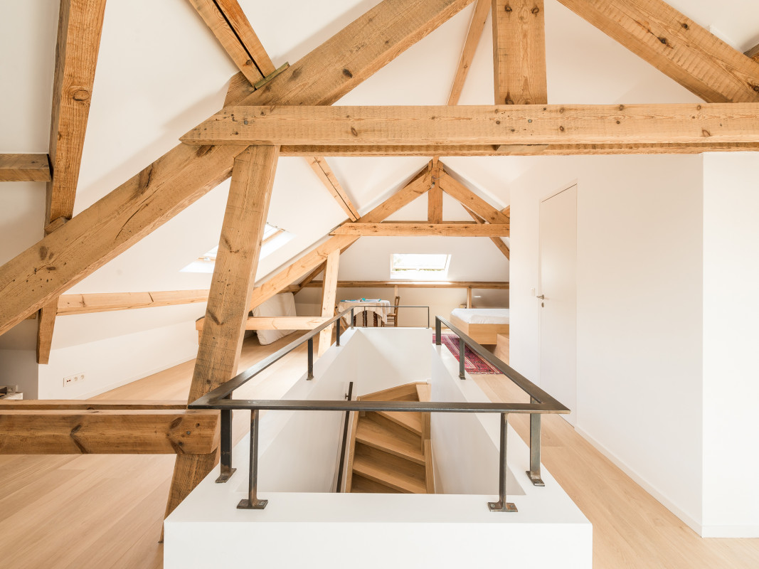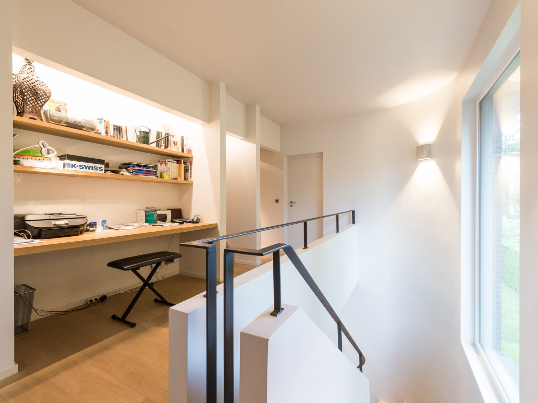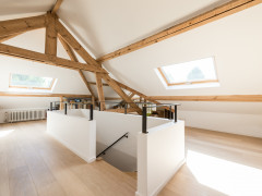 The work done over the existing stairs and the new one, leading to the attic, has created a real link between the different floors while integrating a shared space on the first floor landing.